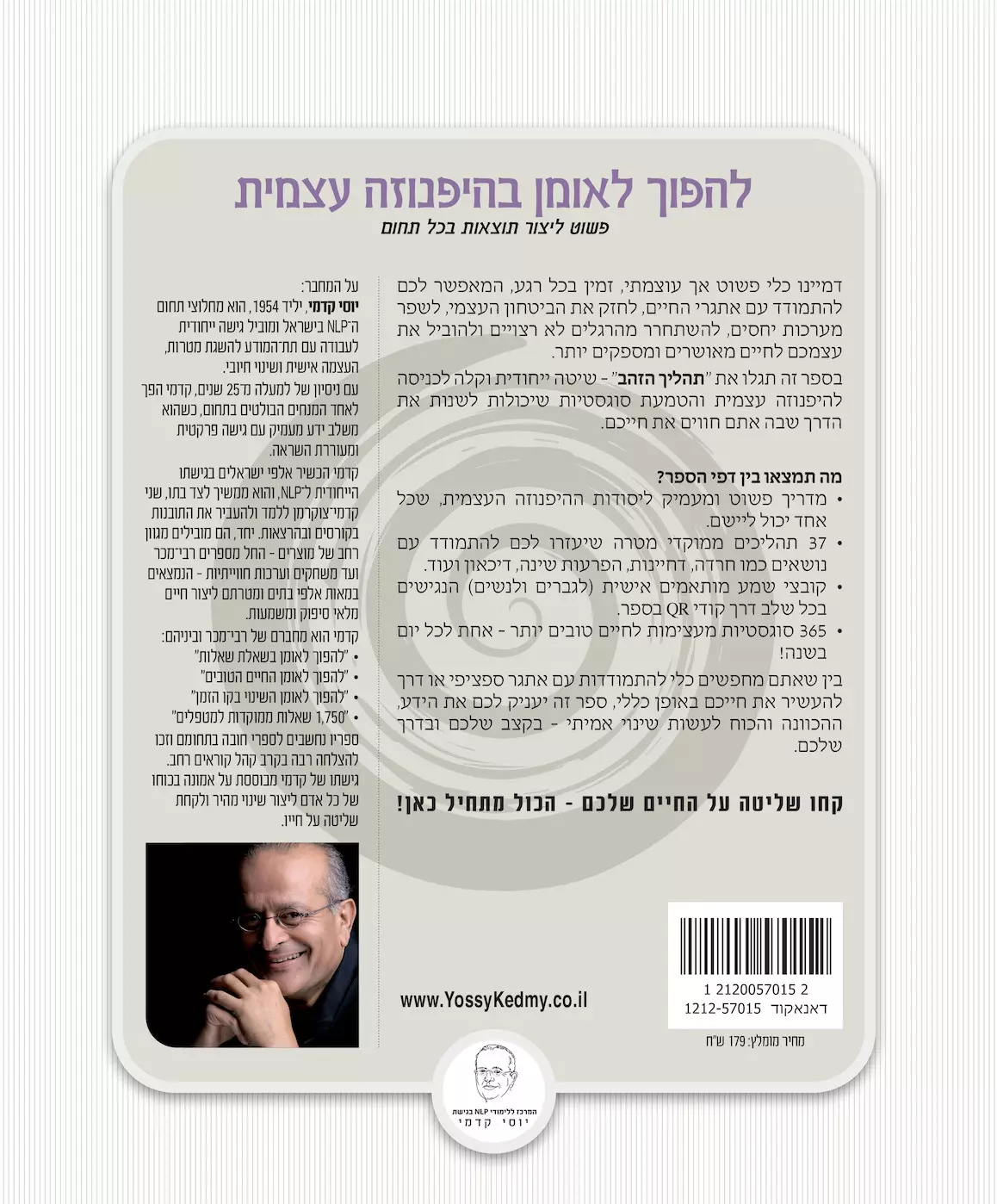 רב מכר חדש מאת יוסי קדמי – קחו שליטה על החיים שלכם – הכול מתחיל כאן! בין שאתם מחפשים כלי להתמודדות עם אתגר ספציפי או דרך להעשיר את חייכם באופן כללי, ספר זה יעניק לכם את הידע, ההכוונה והכוח לעשות שינוי אמיתי – בקצב שלכם ובדרך שלכם.